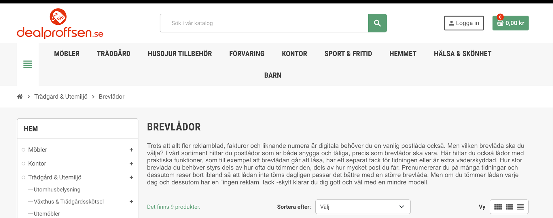 SEO-optimised webpage copy for the e-commerce company Dealproffsen.se