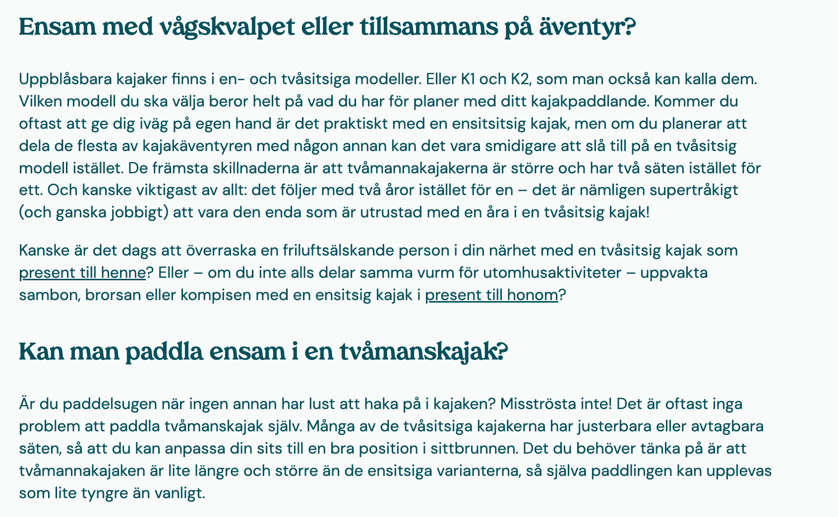 SEO editorial to answer our customers' kayak-related questions about how to choose an inflatable kayak.