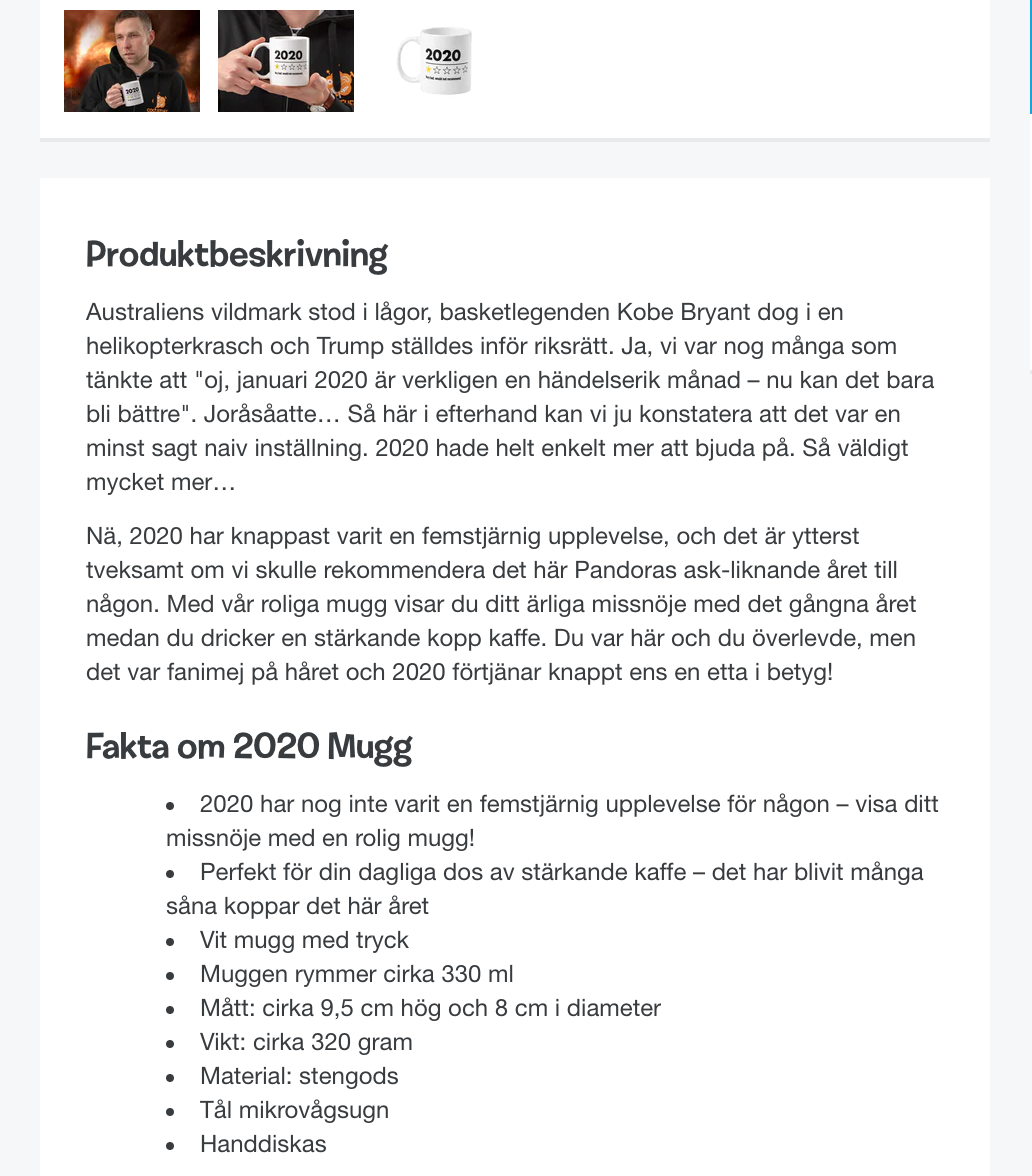 At Coolstuff, I did a lot of writing for different product pages. This is a very honest and typical 2020 product.